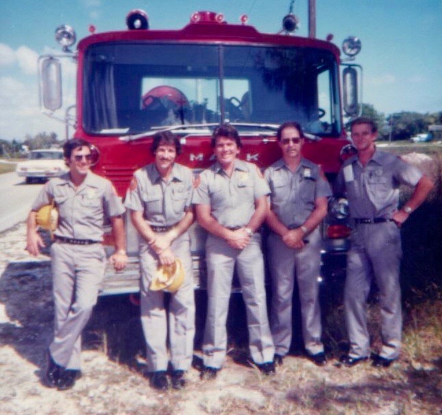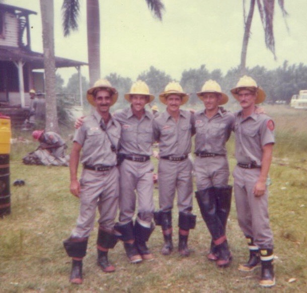 Jeff, me, John, Jack and Mike taking time out from a training burn during Fire College.