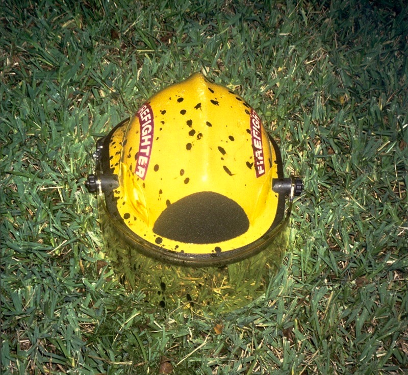 The remains after putting out a house fire. During overhaul, we threw the burned and charred contents of the room out the window